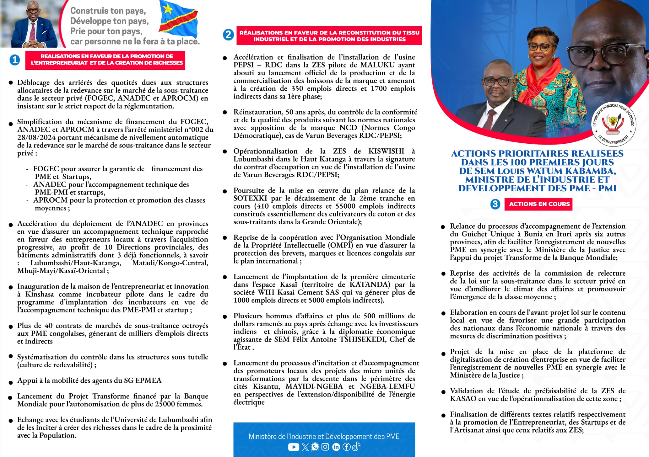 En dépit des obstacles, y compris une tentative d’empoisonnement, le Ministre Louis Watum Kabamba demeure une figure marquante du gouvernement Suminwa. Son engagement indéfectible pour la promotion de l’entrepreneuriat et le développement des petites et moyennes entreprises (PME) a marqué les premiers 100 jours du mandat de la Première ministre Judith Suminwa Tuluka.