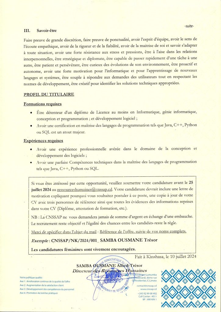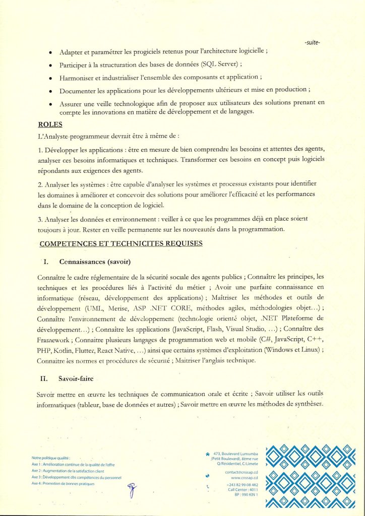 Share0 Lisez les détails ci-dessous sur le recrutement d’un Analystes-Programmeur à la caisse nationale de Sécurité Sociale des Agents Publics de l’Etat.
