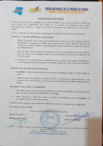 À travers ce programme, l’UNPC Sud-Kivu appelle à une mobilisation massive des professionnels des médias et insiste sur l’importance de l’unité du corps journalistique. L’organisation rappelle que ces activités visent à renforcer un journalisme engagé au service de la paix, dans un contexte où les médias jouent un rôle central dans la stabilité sociale du Sud-Kivu.