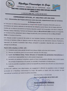 Enfin, la FDCC-APC réaffirme son engagement à défendre les populations civiles et l’intégrité du territoire national, tout en appelant au respect strict du droit international humanitaire.
