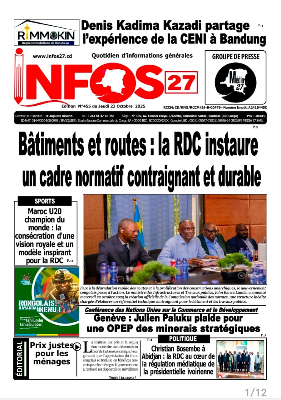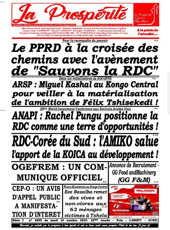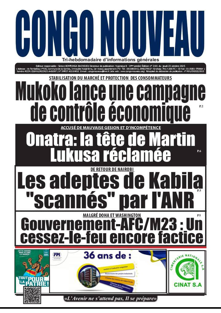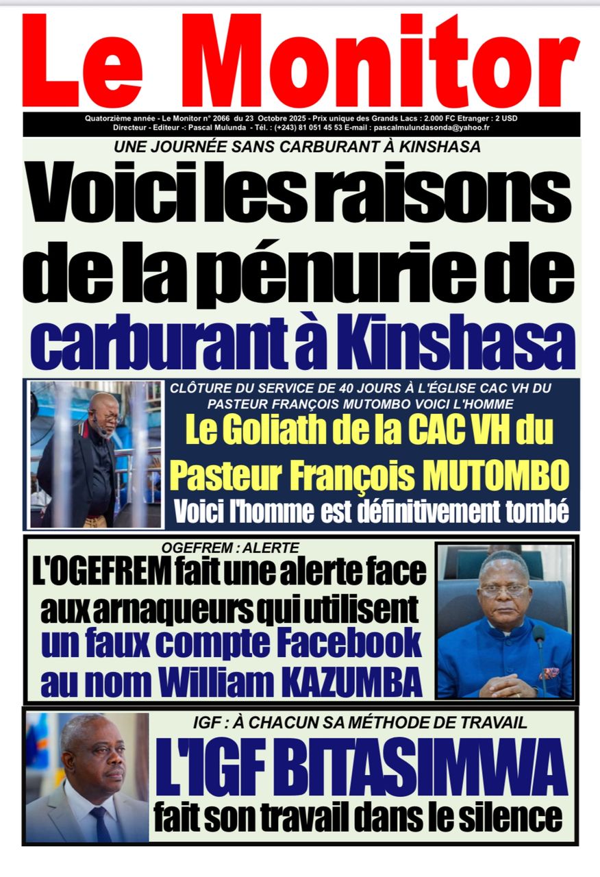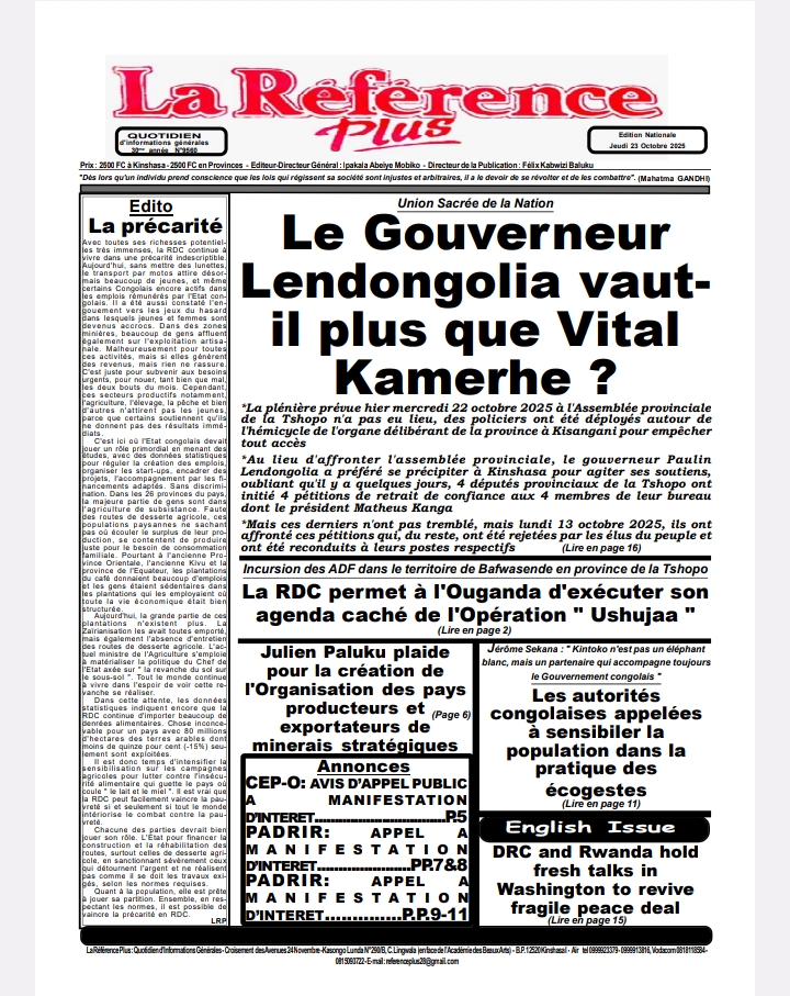 Sur le plan économique et social, la capitale connaît de nouvelles perturbations : la pénurie de carburant affecte la circulation et les activités, tandis qu’une recrudescence des braquages inquiète la population. Dans le secteur public, la situation se tend à l’ONATRA, en crise ouverte entre direction et agents. Enfin, à l’Est, l’armée renforce son dispositif sécuritaire avec la nomination de nouveaux commandants, alors que la météo annonce des pluies intenses sur plusieurs régions du pays. Ci-dessous, les manchettes de quelques journaux parus ce jeudi 23 octobre 2025 :